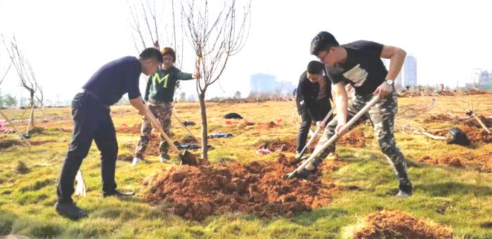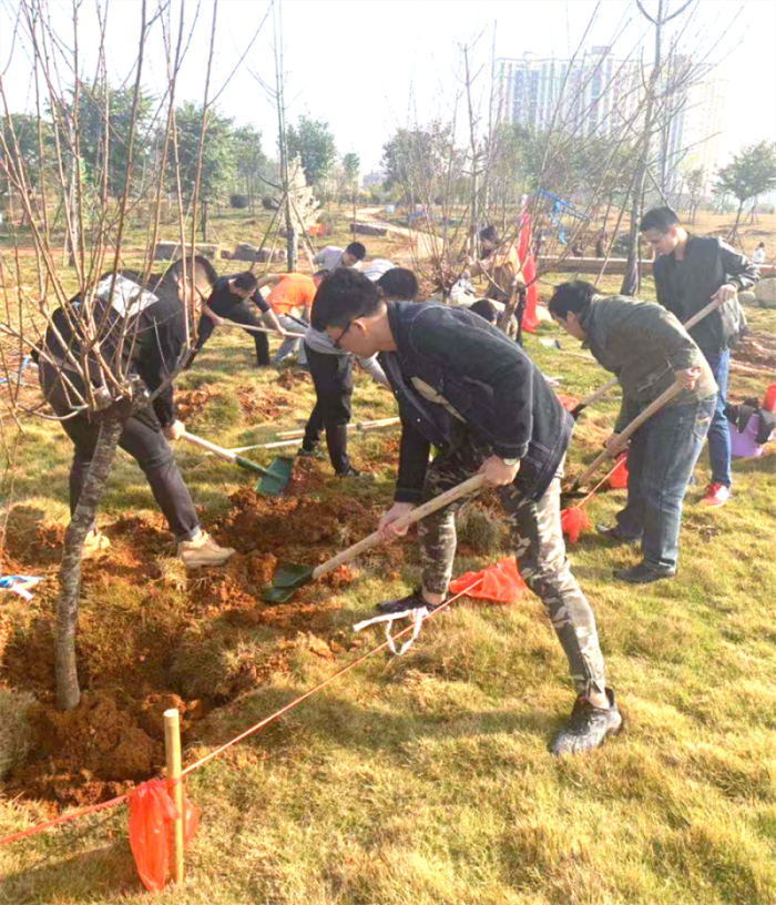 在活動負(fù)責(zé)人進行任務(wù)布置、流程講解后,城投集團團委的青年們便開始了有序的植樹活動。大家分工明確、齊心協(xié)力,揮舞鐵鍬翻新土,扶植新苗列成行,呈現(xiàn)出一派熱火朝天的勞動場面。
