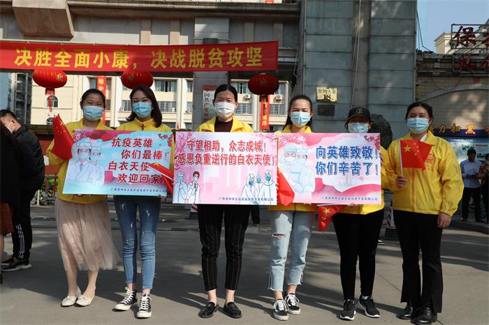 發(fā)布時(shí)間:2020-04-15 作者:文字/何莎莎 視頻/陸陽楊 圖片/義潔 來源:本站原創(chuàng) 審核:湯彩燕4月15日下午,賀州支援湖北醫(yī)療隊(duì)33名隊(duì)員圓滿完成工作任務(wù)凱旋而歸。賀州正贏實(shí)業(yè)公司黨支部組織全體黨員干部職工一行到賀州大道迎接英雄歸來,開展“致敬英雄,擔(dān)當(dāng)作為”主題黨日活動(dòng)。