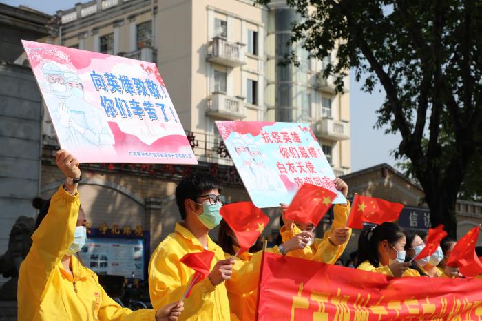 自新冠肺炎疫情發(fā)生以來,賀州市共派出33名醫(yī)護(hù)骨干和1名防疫專家緊急馳援湖北開展醫(yī)療救治工作。他們帶著賀州市委、市政府的囑托和關(guān)懷,帶著家鄉(xiāng)246萬人民的牽掛和關(guān)心,義無反顧投身抗擊疫情第一線。他們以信心、勇氣和醫(yī)技為疫區(qū)群眾筑起了堅(jiān)強(qiáng)的健康長城,不負(fù)黨和人民托付,彰顯了敬佑生命、救死扶傷、甘于奉獻(xiàn)、大愛無疆的崇高精神,詮釋了醫(yī)護(hù)工作者的初心使命,充分展現(xiàn)了新時(shí)代賀州人民的責(zé)任擔(dān)當(dāng)和精神風(fēng)貌。