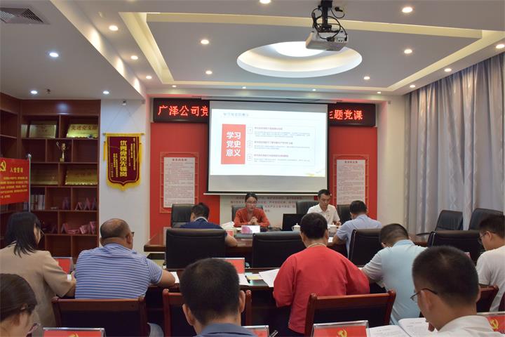 7月23日廣澤公司黨支部召開專題組織生活會,集團(tuán)黨委委員、紀(jì)委書記吳澤蓮應(yīng)邀到會給黨員上黨課并指導(dǎo)黨史學(xué)習(xí)教育專題組織生活會。支部全體黨員參加會議,支部書記楊邦樞主持會議。