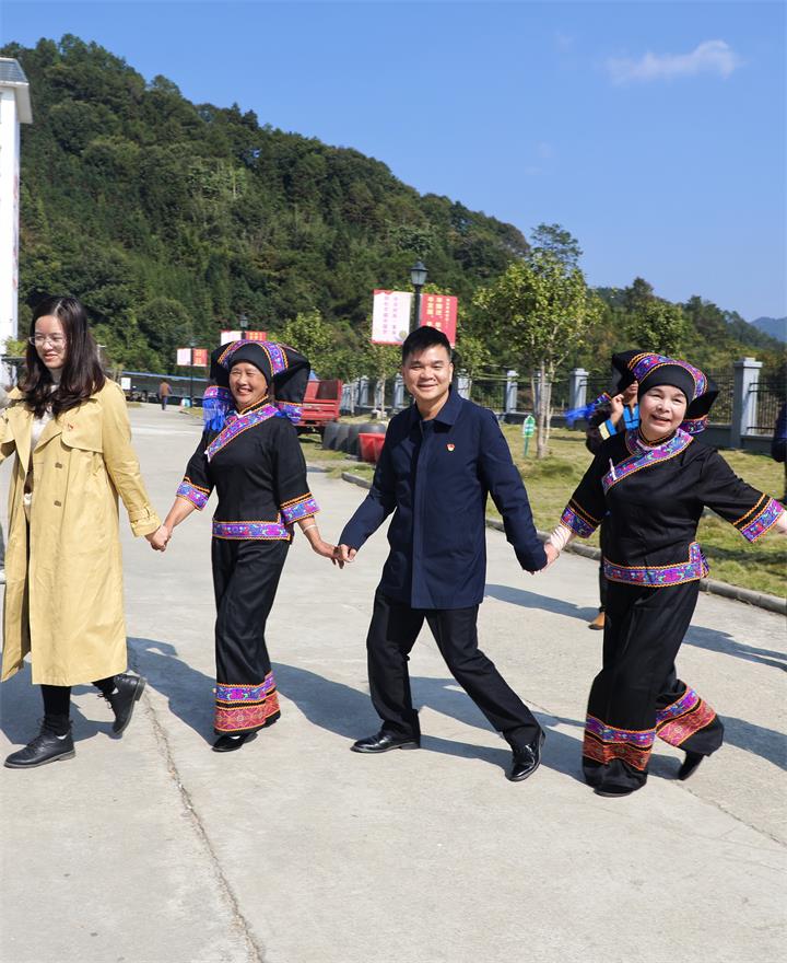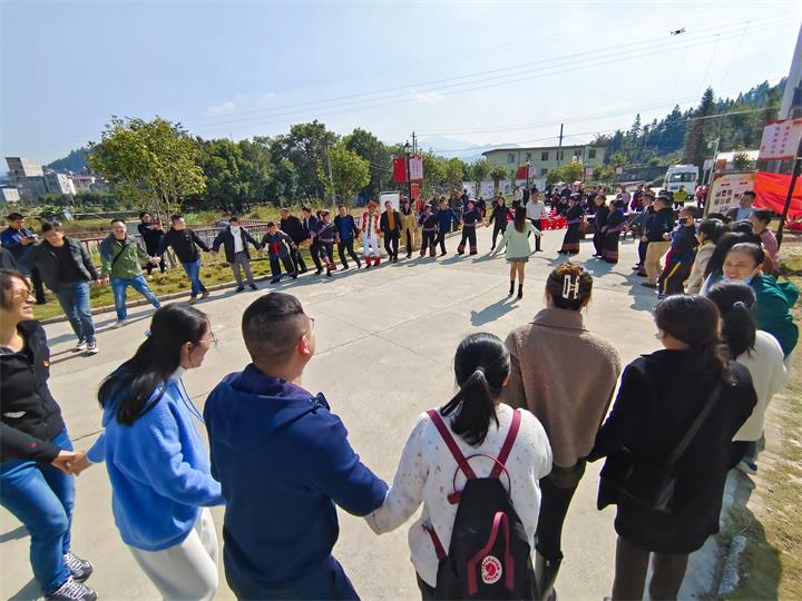 手牽手、心連心,民族團(tuán)結(jié)齊奮進(jìn)。在活動(dòng)中,南鄉(xiāng)壯族山歌隊(duì)為大家演唱了古樸的壯族特色歌曲《歡迎朋友到壯鄉(xiāng)來》和《南鄉(xiāng)歡迎您》,讓大家充分感受到壯鄉(xiāng)人民獨(dú)特的文化魅力與熱情純樸的民俗風(fēng)情。隨后,全體黨員與鄉(xiāng)民一同開展紅色歌曲大家唱活動(dòng),攜手齊唱《唱支山歌給黨聽》,共同跳起《愛我中華》民族團(tuán)結(jié)手勢(shì)舞蹈,并體驗(yàn)了壯族特色的投擲繡球等民俗文化活動(dòng),讓大家感受到了各民族相聚在一起,共敘民族團(tuán)結(jié)之情的良好氛圍。