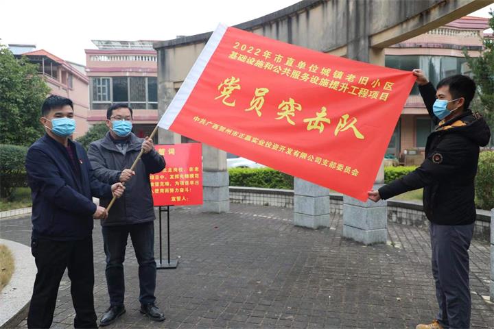 發(fā)布時(shí)間:2021-12-23 作者:圖/張嘉茵 文/李秀萍 編輯/義潔 來源:本站原創(chuàng) 審核:鄧永劍12月23日,正贏實(shí)業(yè)公司黨支部開展“攻堅(jiān)有我、黨旗在項(xiàng)目一線高高飄揚(yáng)”主題黨日活動(dòng),聚焦老舊小區(qū)改造項(xiàng)目攻堅(jiān),黨員示范帶頭,真正讓黨旗在項(xiàng)目一線高高飄揚(yáng)。賀州城投集團(tuán)黨委委員、副總經(jīng)理,正贏實(shí)業(yè)公司黨支部書記柳國忠主持活動(dòng),正贏實(shí)業(yè)公司黨支部黨員、預(yù)備黨員、入黨積極分子共20余人參加活動(dòng)。